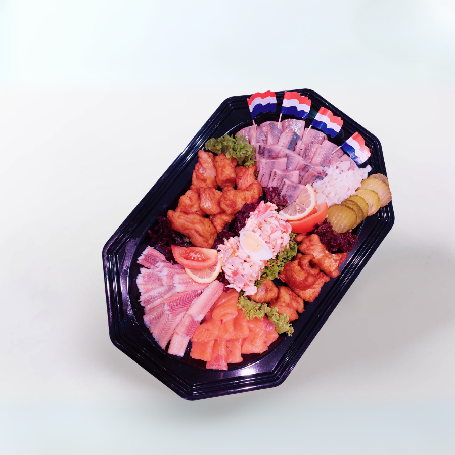 Gemengde visschotel met minimaal 5 soorten vis. De schotel is voor 6 tot 8 personen.