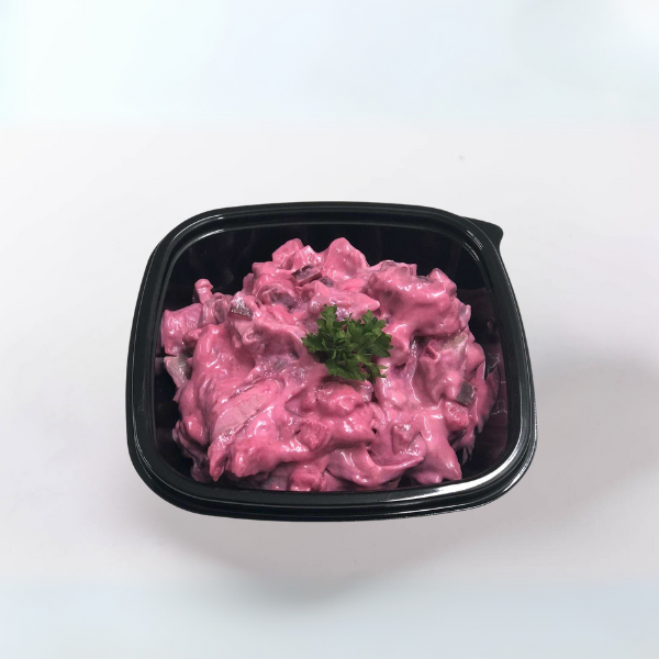 Bakje haring-bietensalade, fris en kleurrijk. Deze specialiteit wordt met zorg bereid en is ideaal om te delen met vrienden of familie. Perfect geschikt voor zowel lunch als diner, en altijd vers van de beste kwaliteit. Geniet van de rijke smaken die kenmerkend zijn voor onze keuken, waarbij traditie en ambacht samenkomen.