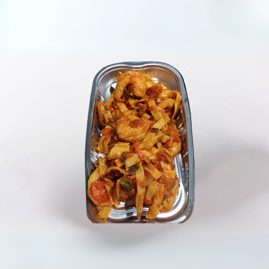 Een romige klassieker met een kick. Sappige gamba’s, al dente pasta en een zijdezachte tomaat-knoflooksaus met een vleugje chili, citroen en verse peterselie. Comfortfood dat zó smaakt alsof je uit eten bent—maar dan thuis.